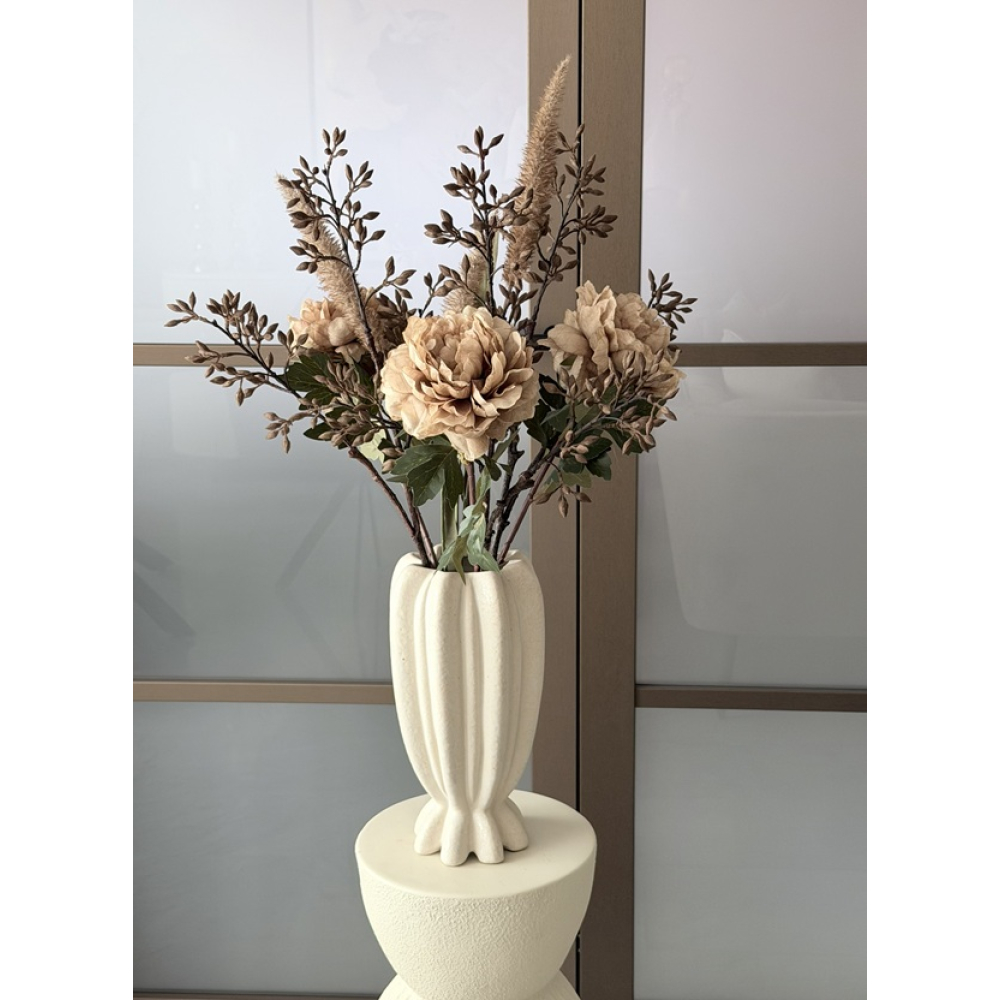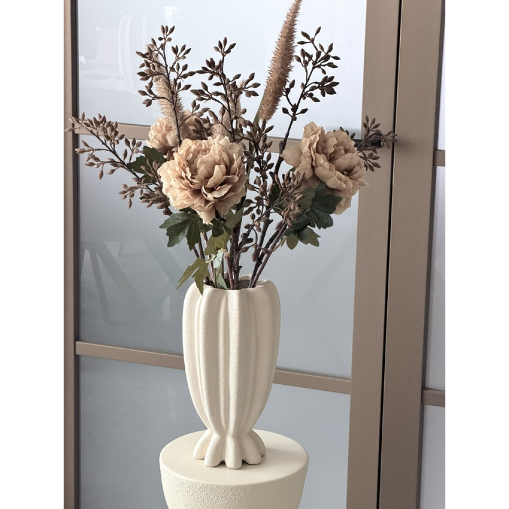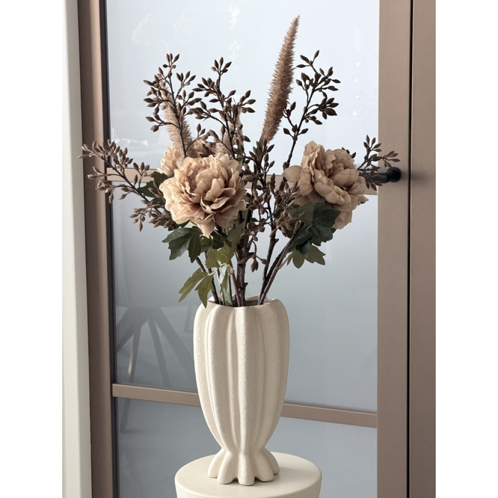 De vaas is van aardewerk en heeft een Ivory kleur.