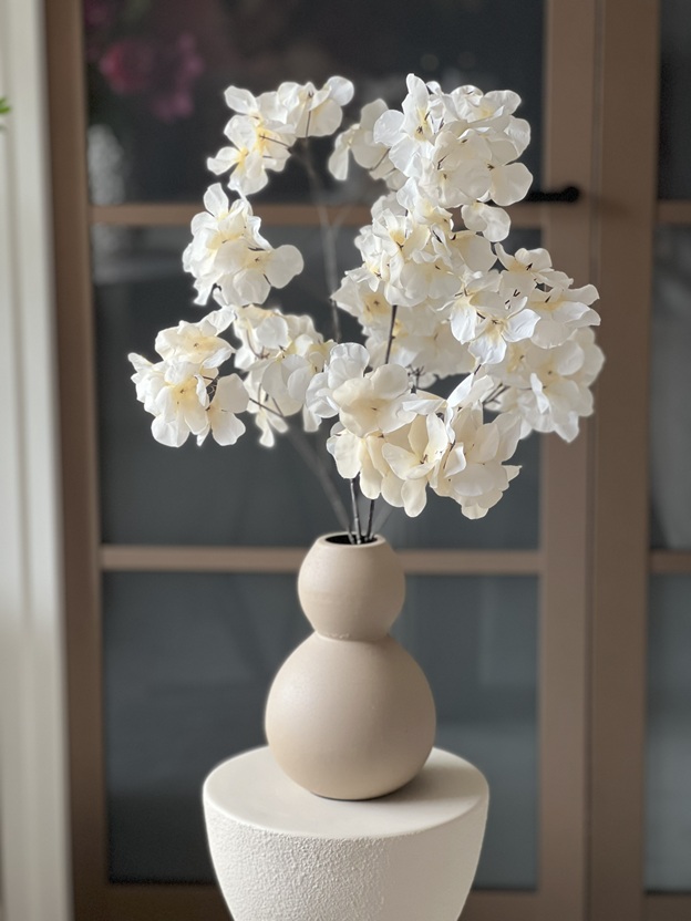 Diga Colmore vaas taupe met zijden Hydrangea.