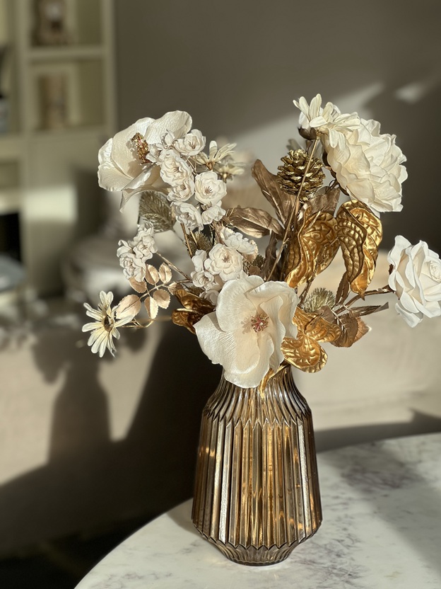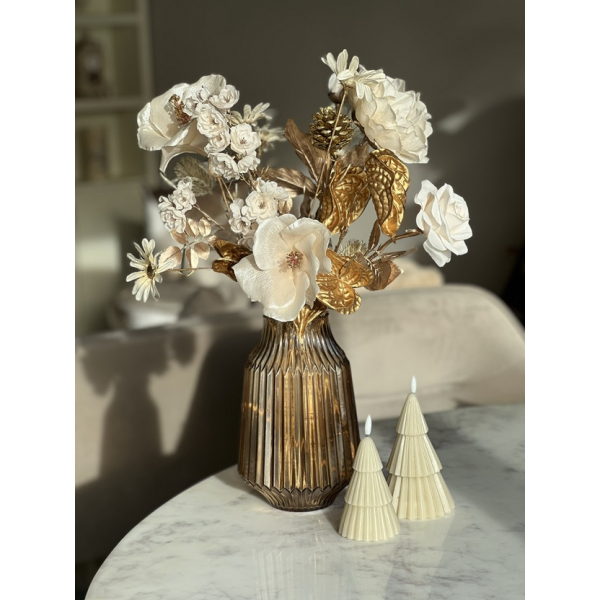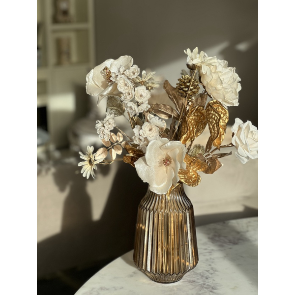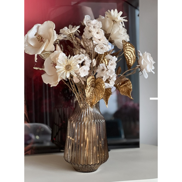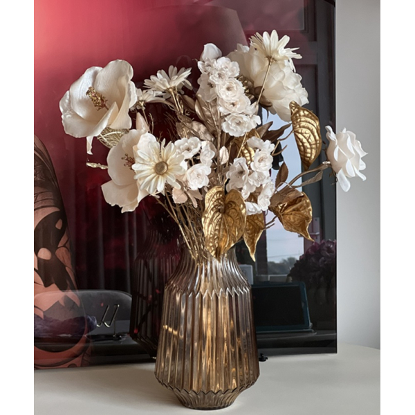 Feest boeket inclusief vaas is ongeveer 55cm hoog.