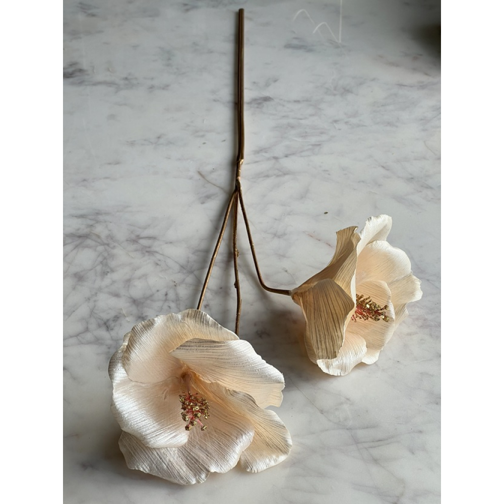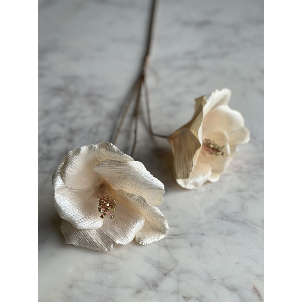 Kleur: Creme en het hart van de bloem is glitter goud en de steel is goudkleurig