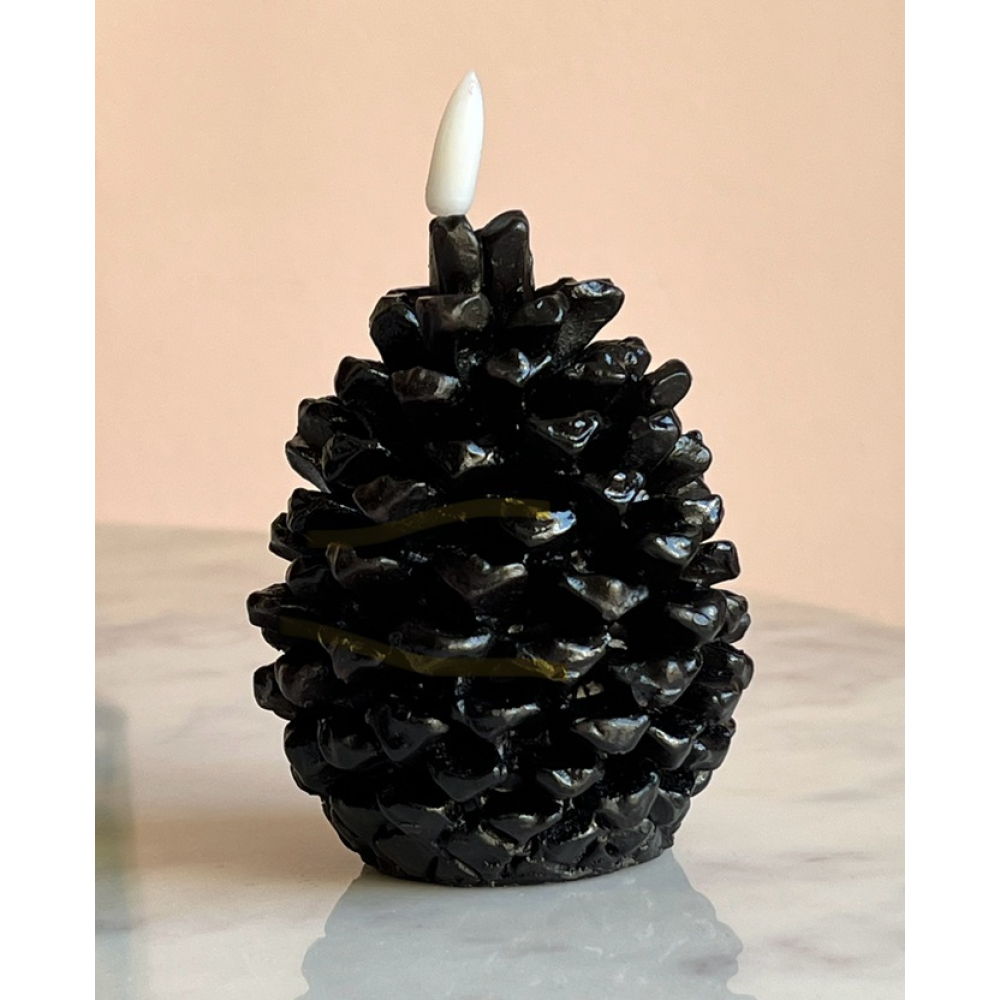 Led Dennenappel zwart groot 14cm