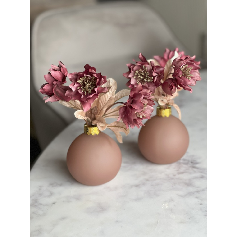 Set van 2 kerstbal vaasjes inclusief bloemen.