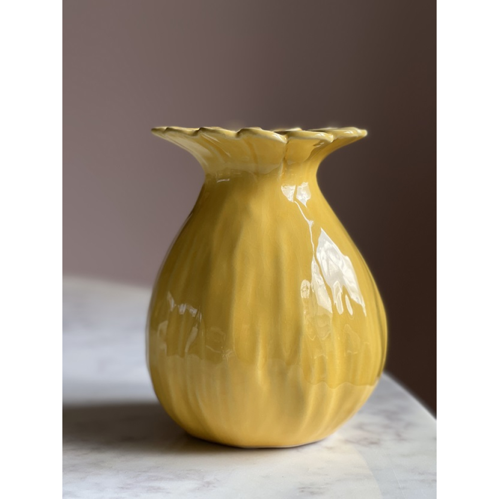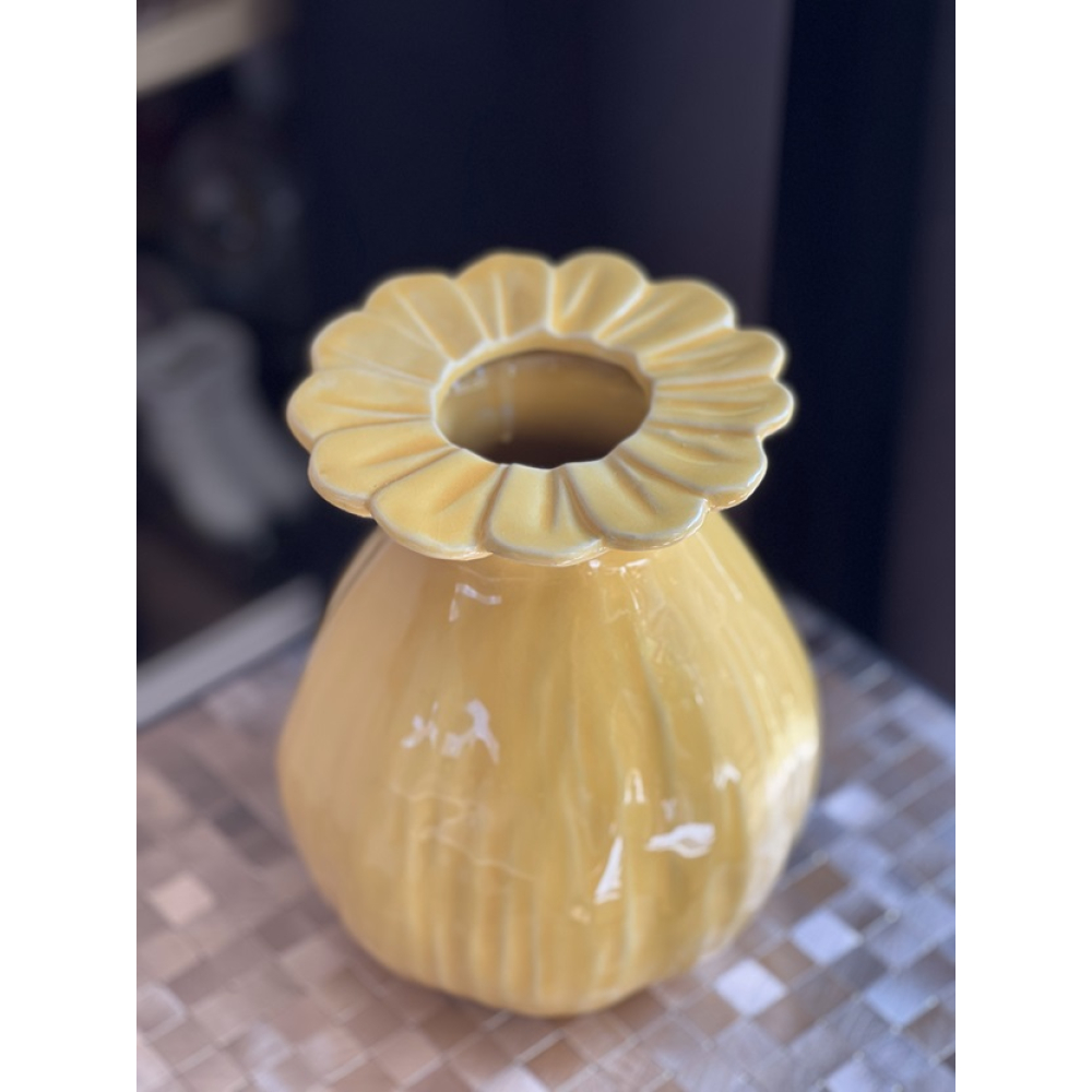 Prachtige zomerse vaas met een bloemrand langs de hals van de vaas.