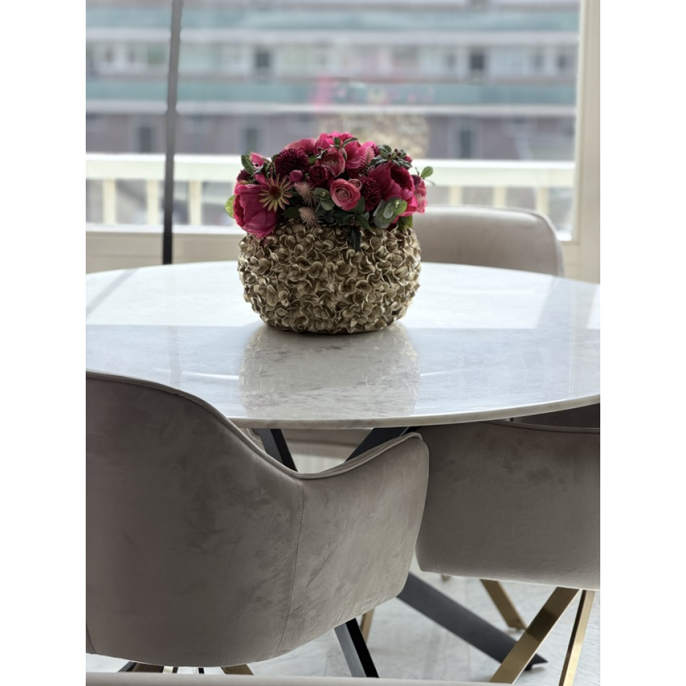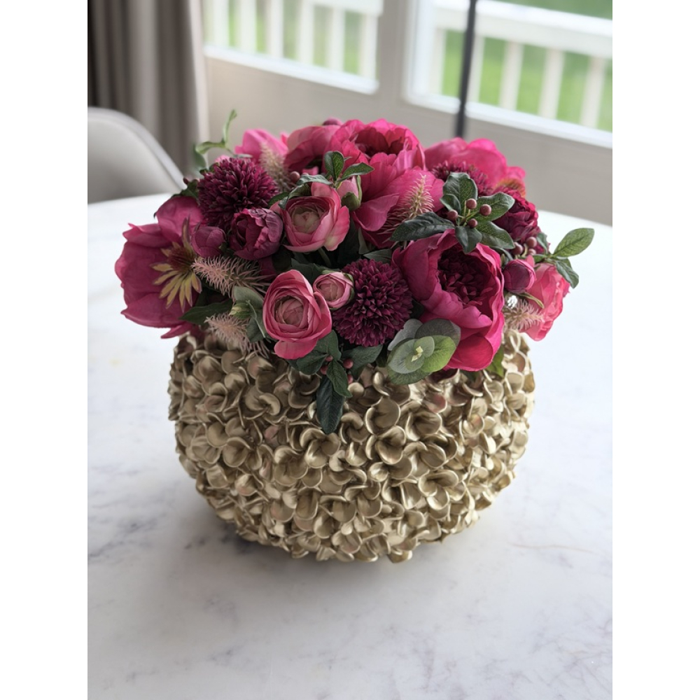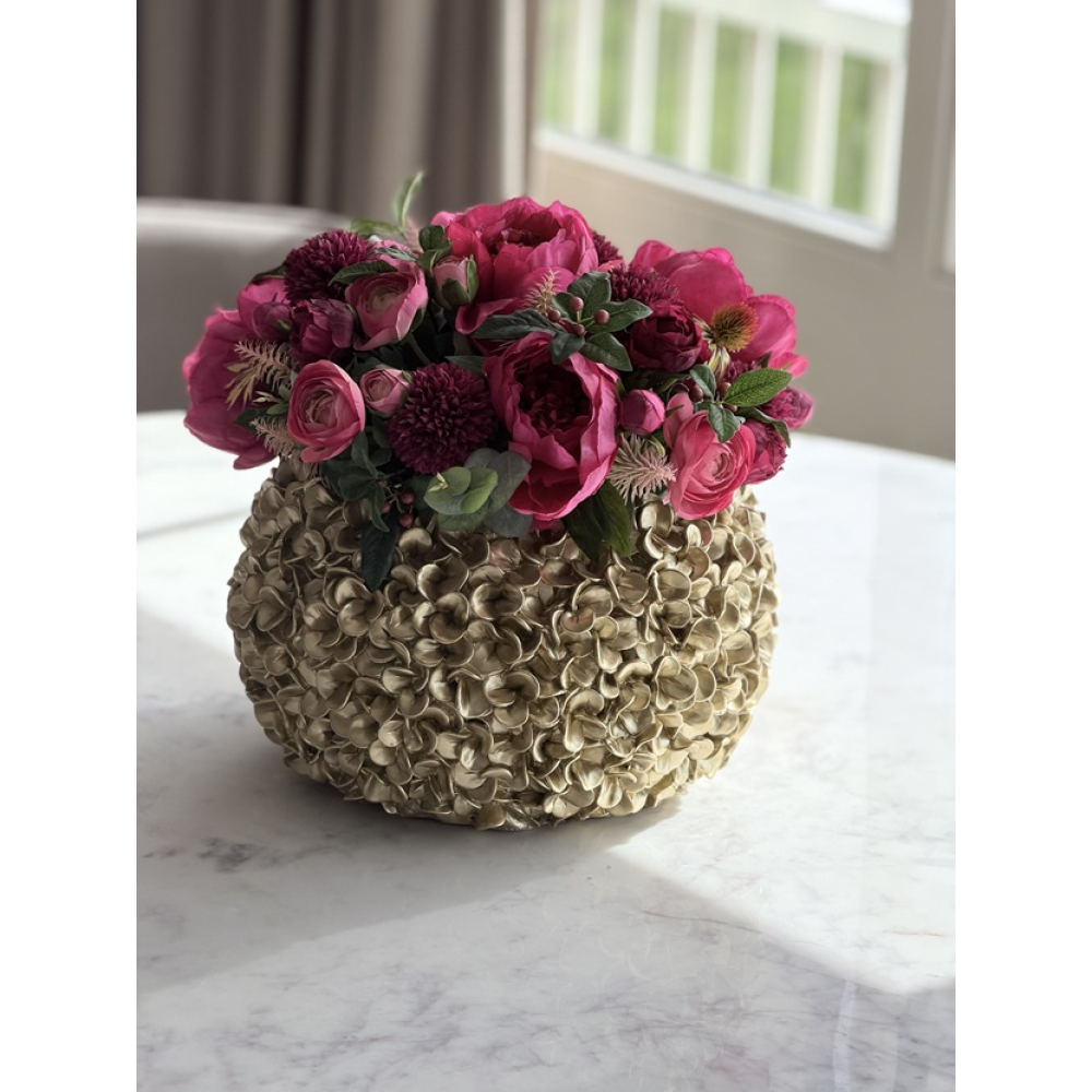 Zijden biedermeier Fuchsia is opgemaakt in de Fleurs schaal vaas van Light&Living.