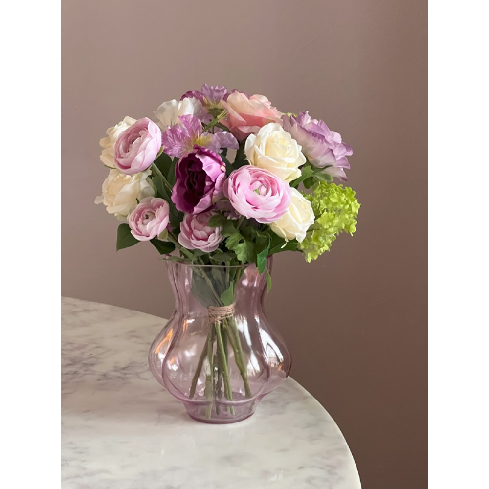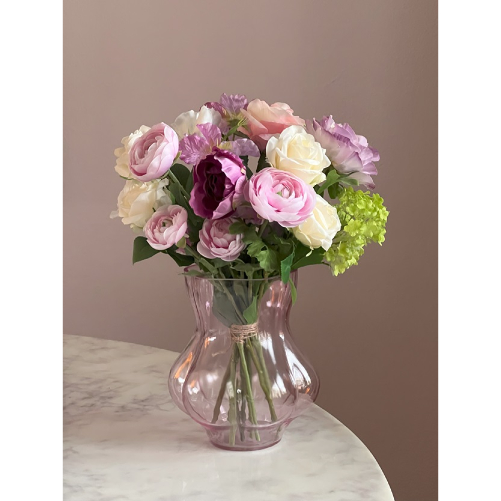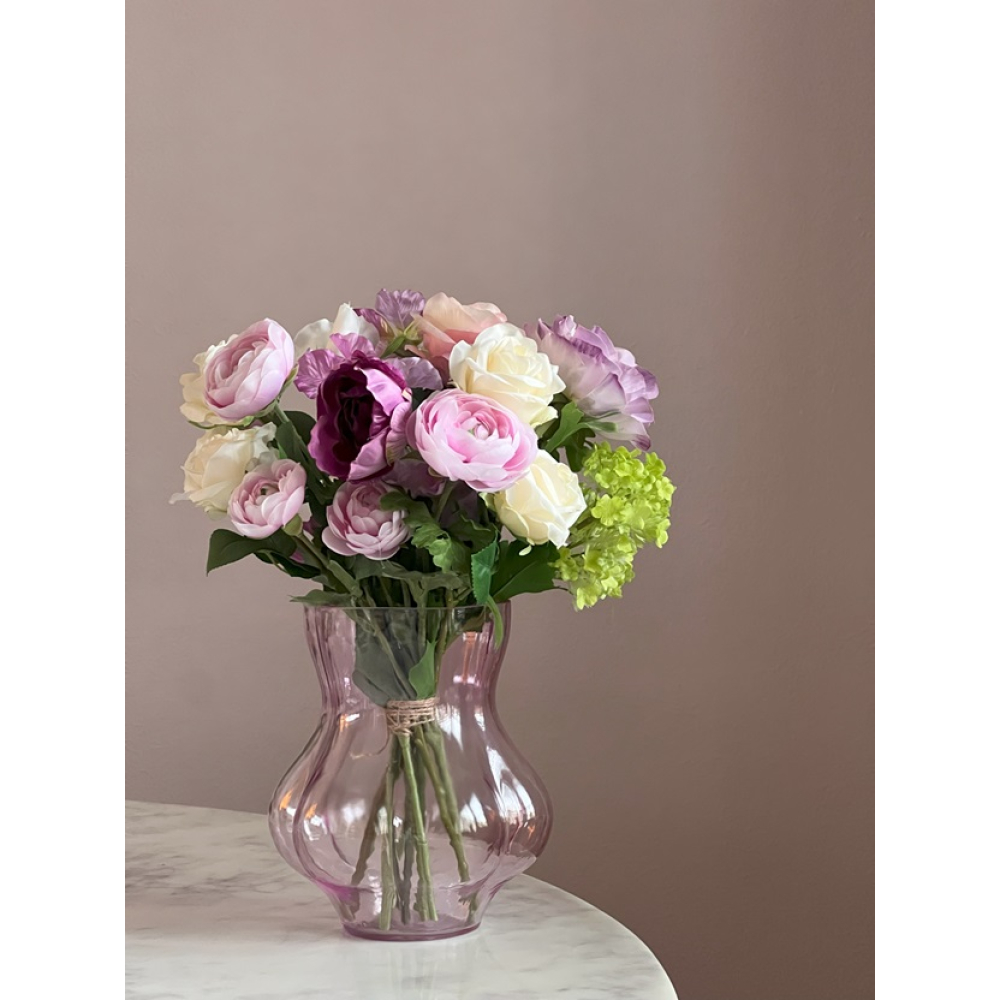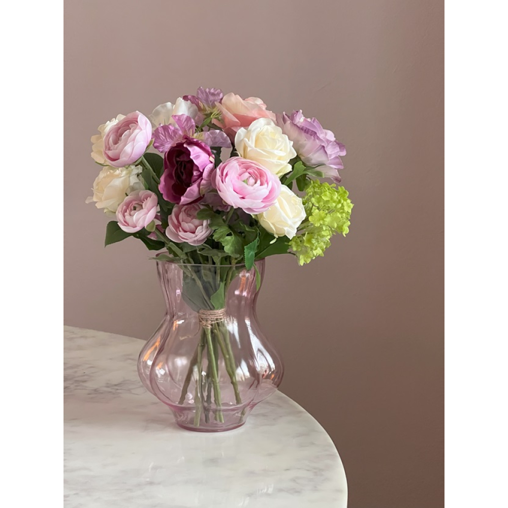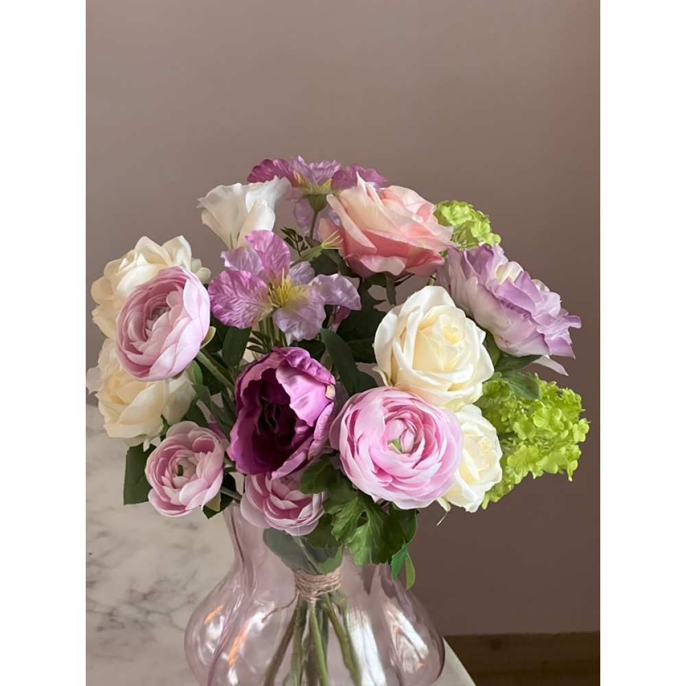 In het boeket zitten Rozen, Ranonkels, Tulp, Lisianthus en nog veel meer.