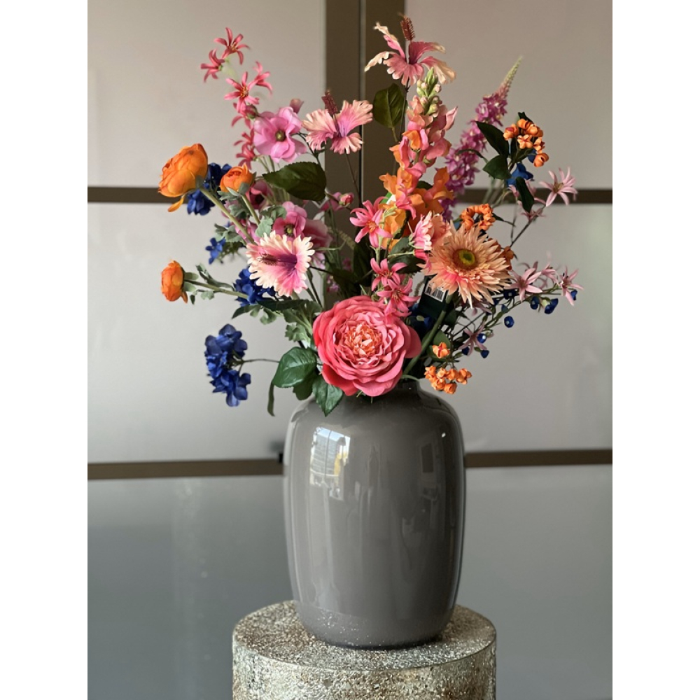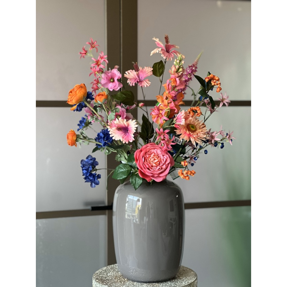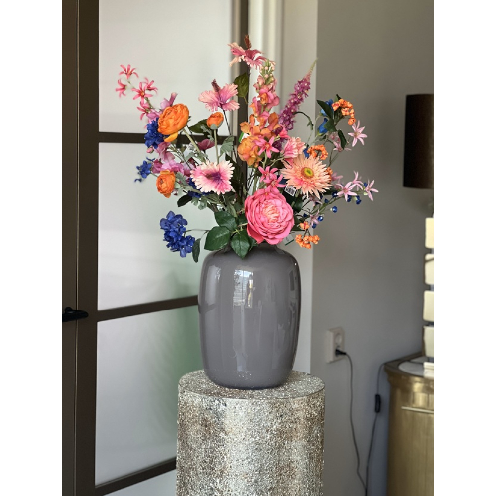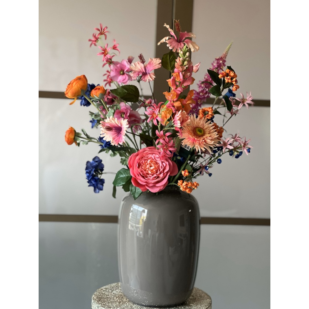 De vaas is met het boeket er in ongeveer 80cm hoog.
