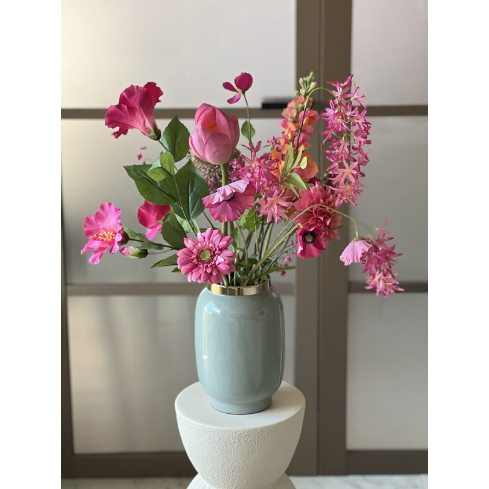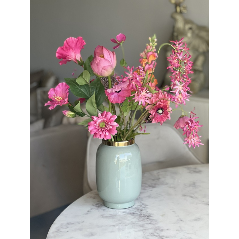 Zijden boeket Lotus inclusief vaas is ongeveer 60cm hoog.