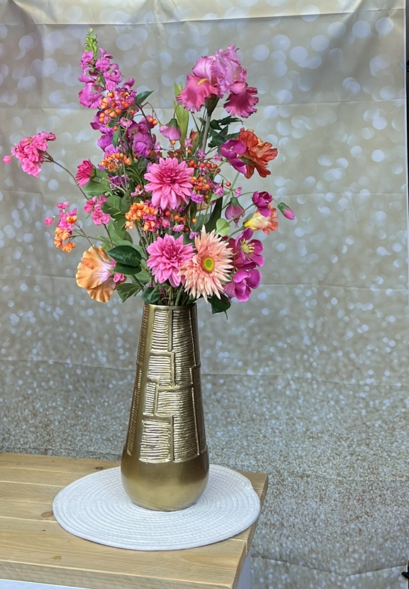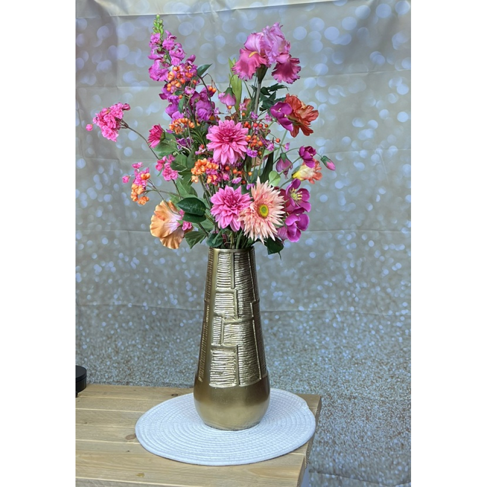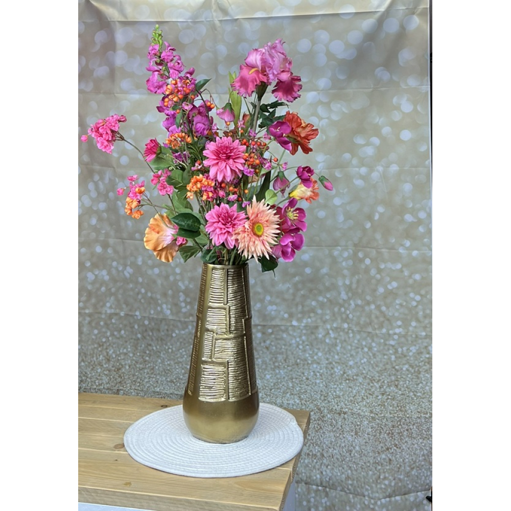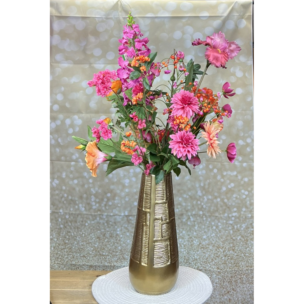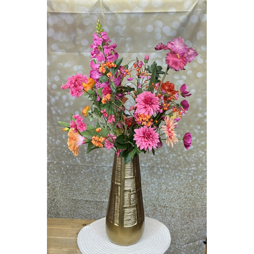 Zijden boeket Misty inclusief vaas is ongeveer 90cm hoog.