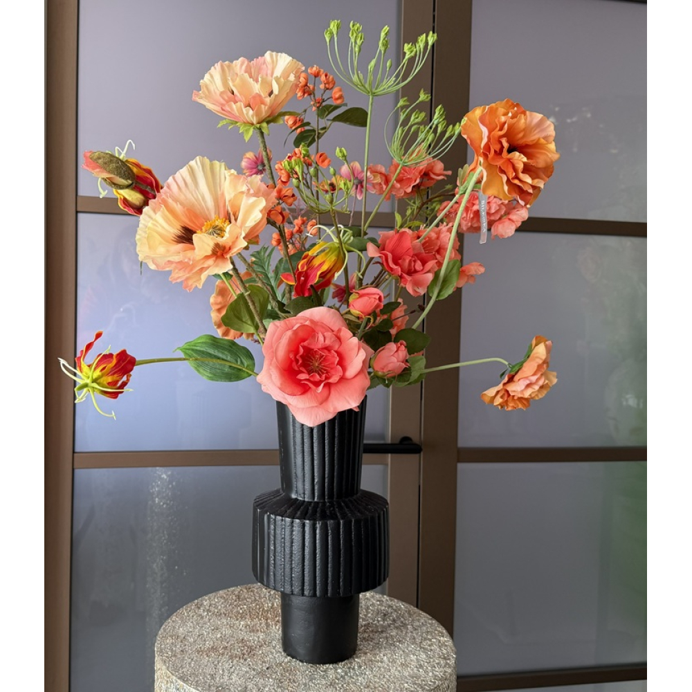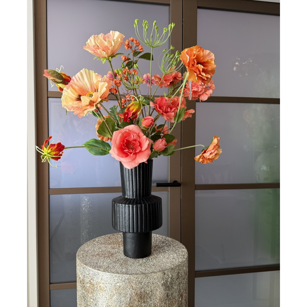 Hoogte van de vaas inclusief bloemen is ongeveer 70cm.