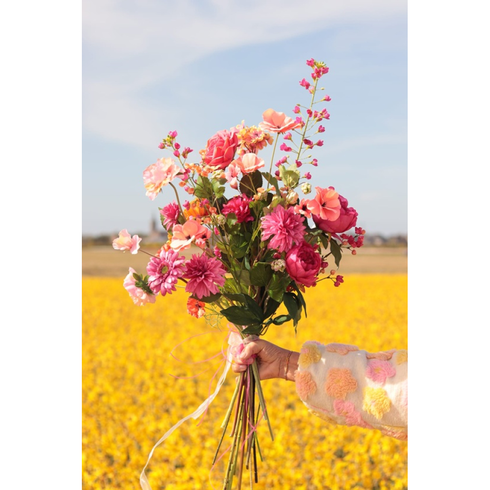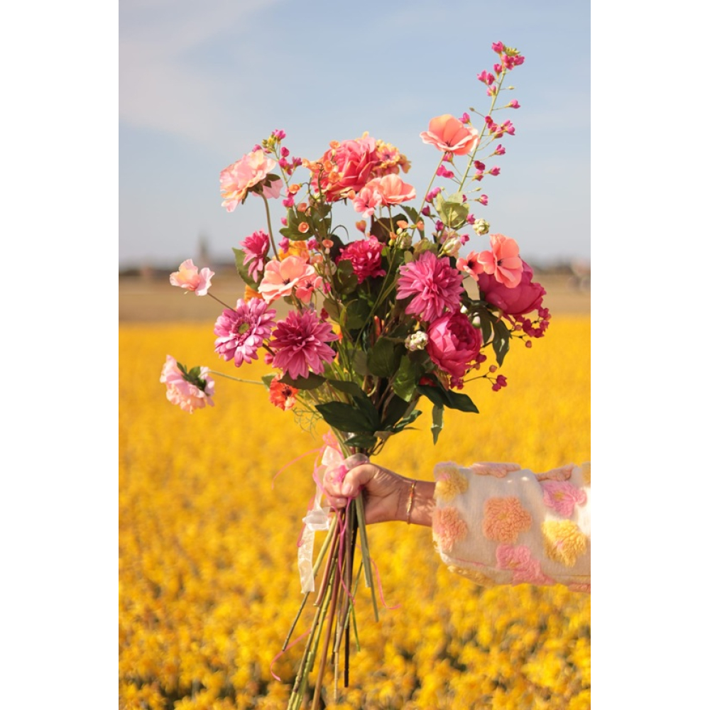 Zijden boeket Spring is gemaakt in roze en oranje Tinten.