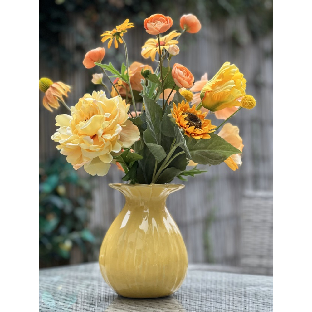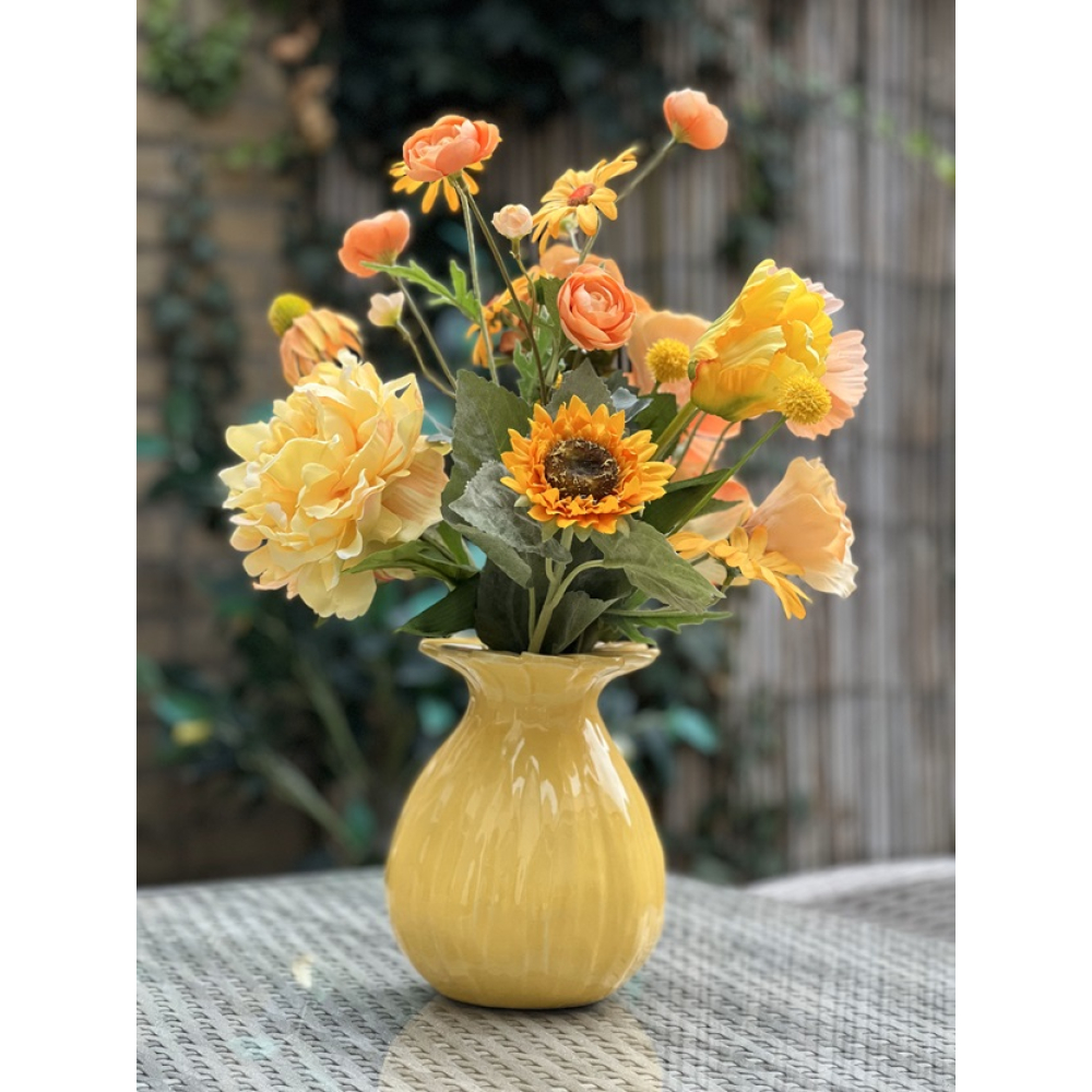 Zijden boeket Sun met vaas heeft een hoogte van ongeveer 48cm.