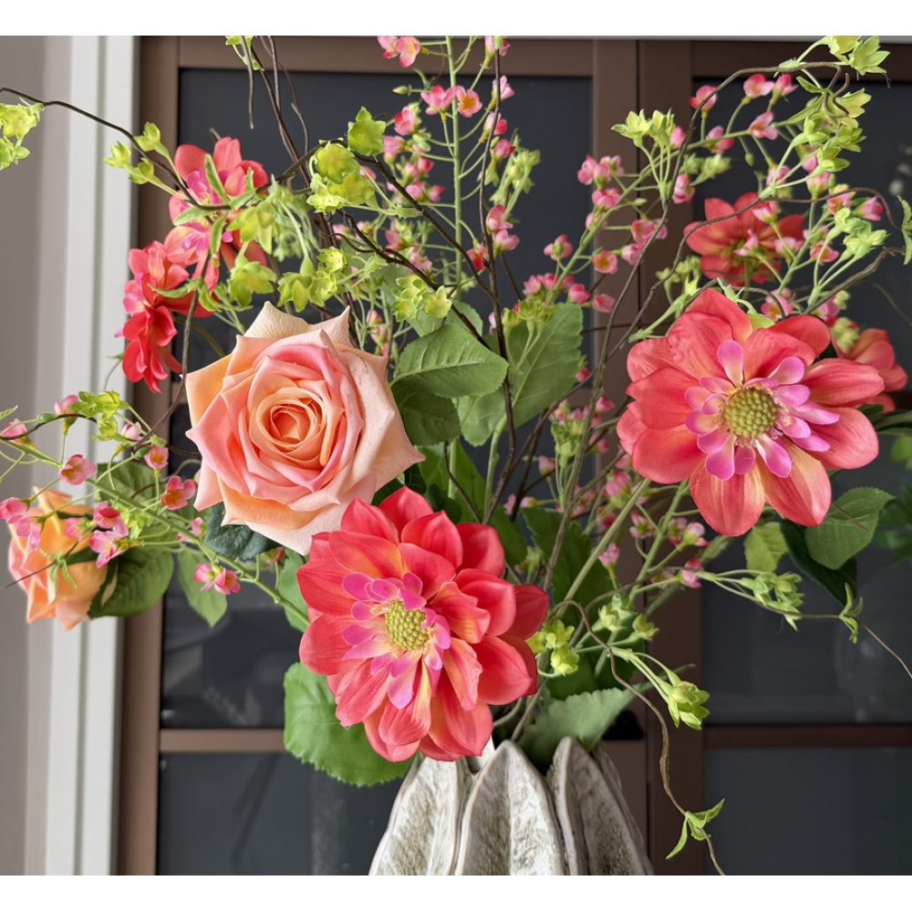 3 Rozen,3 Ptlea takken, 3 Geranium takken en 3 mini bloem takken.