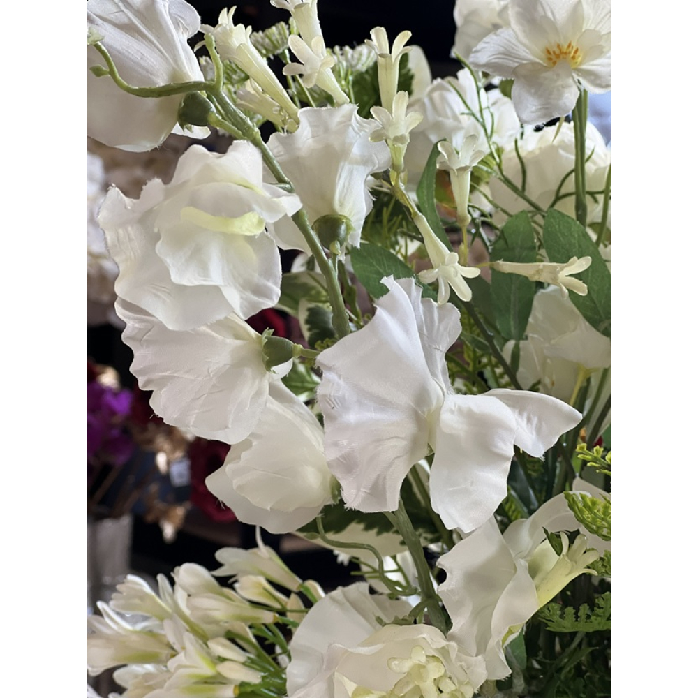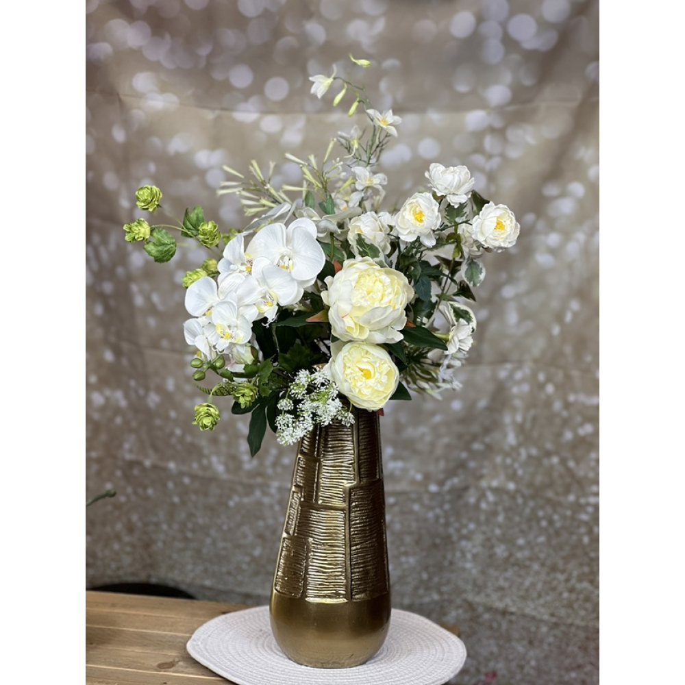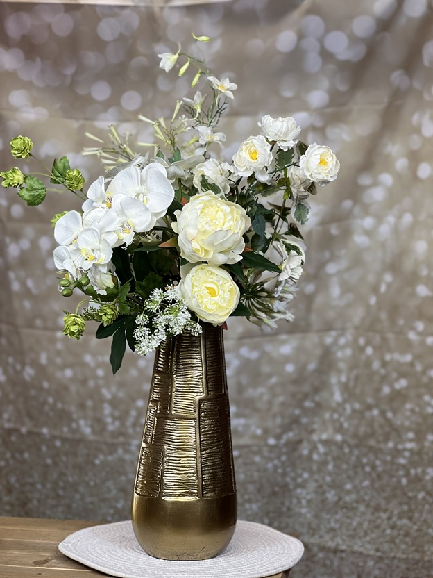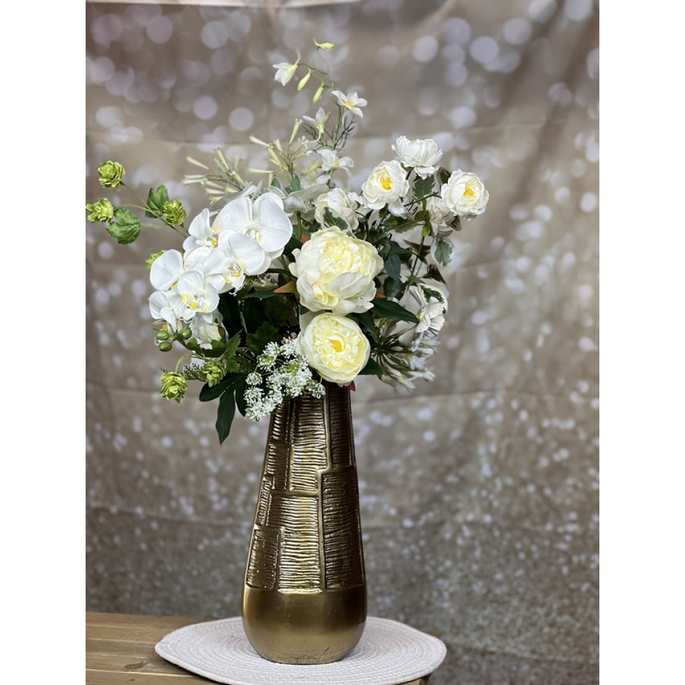 Zijden boeket wit staat in een vaas van het merk Diga Colmore.